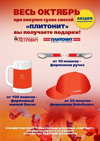 Покупателей ПЛИТОНИТа в сети «СТД «Петрович» в Санкт-Петербурге весь октябрь ждут приятные сюрпризы!