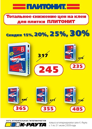 Тотальное снижение цен на клеи для плитки ПЛИТОНИТ!