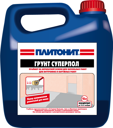 С апреля 2011 г. компания MC-Bauchemie приступает к выпуску нового продукта – высокопроникающего праймера для напольных работ ПЛИТОНИТ Грунт СуперПол. Продукт предназначен для грунтования полов на цементной и гипсовой основе перед применением ровнителей для полов на цементной и гипсовой основе при внутренних и наружных работах. Возможна также обработка стен и потолков перед применением штукатурных, шпаклевочных и клеевых смесей.