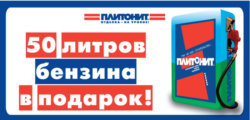 При покупке любой продукции ТМ ПЛИТОНИТ у компаний-партнеров акции в Москве в период с 01.03.11 по 30.06.11 за каждые 50 000 рублей Вы получаете подарочный сертификат на приобретение 50 литров бензина марки АИ - 95.