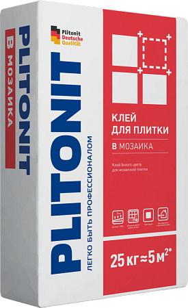 Белый клейПЛИТОНИТ В Мозаика предназначен для приклеивания любых видов стеклянной, керамической, каменной и декоративной мозаики, малоформатной плитки из мрамора, что позволит воплотить в жизнь самые смелые дизайнерские решения.