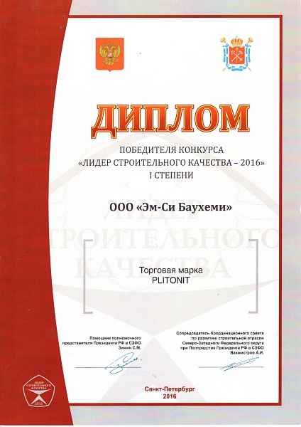 В октябре 2016 года торговая марка Plitonit получила диплом первой степени в конкурсе «Лидер строительного качества» в номинации «Лучший строительный материал».