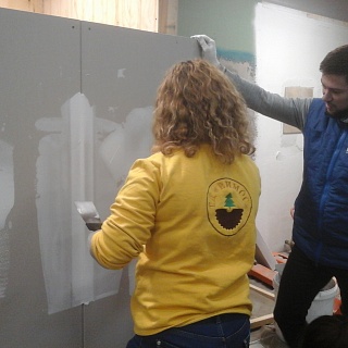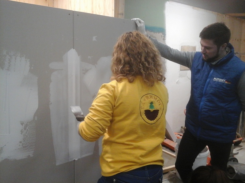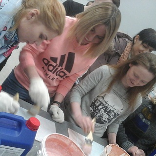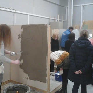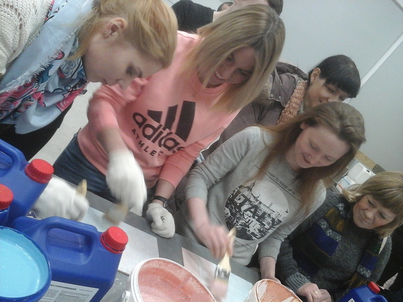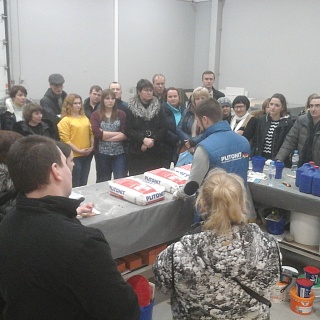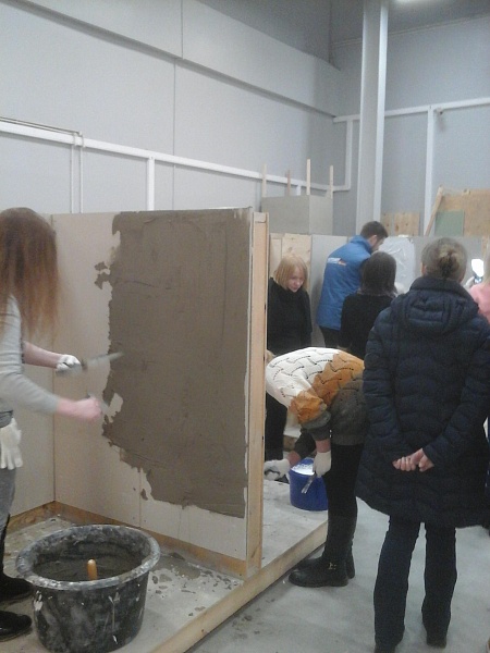 Кроме того, обучающихся удивила новая рецептура шпаклевки КП про: многие попробовали нанесение и были поражены пластичностью и белизной раствора.