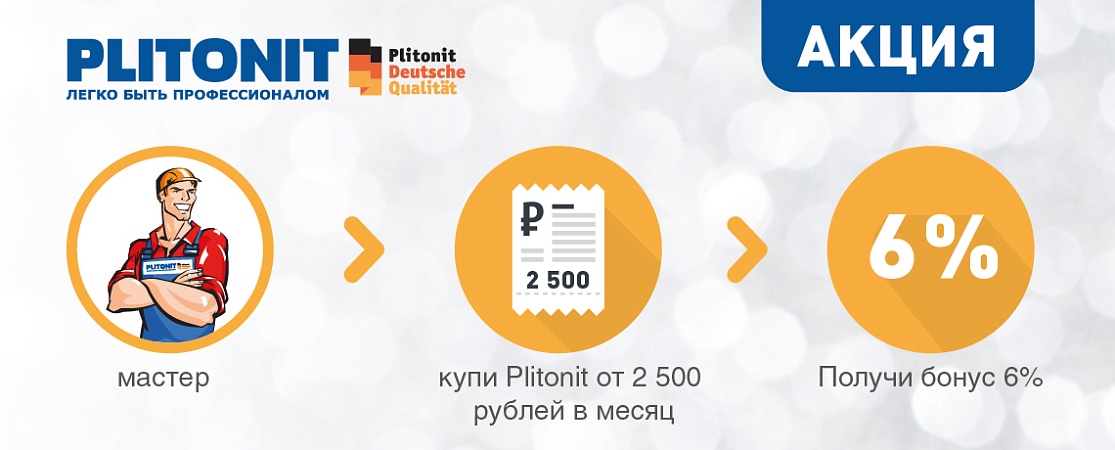 Покупаете продукцию Плитонит на сумму от 2500 руб. - получаете дополнительный бонус 6% в подарок!