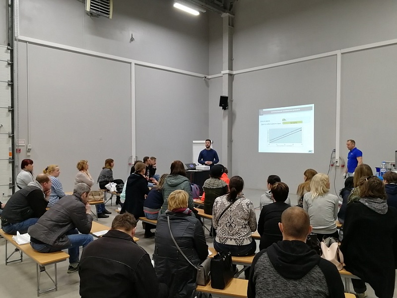4 апреля 2019 г. прошло обучение сотрудников ТД ВИМОС (29 чел) на ПСК в г. Кировск Шабанова Светлана, ведущий менеджер по работе с дилерами, провела экскурсию по заводу, где были продемонстрированы этапы технологии и производства сухих смесей продукции ТМ PLITONIT.