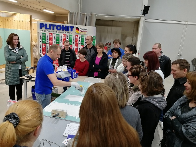 На полигоне ПСК Кировск группу обучающихся встретили технические специалисты: Голубев Александр и Петухов Владимир. Участники обучения узнали новые требования к сухим смесям ГОСТ, разобрали классификации клеевых групп. Голубев Александр дал подробную информацию по праймерам: Готовый грунт, Грунт 1,Грунт Упрочняющий, Аква Грунт.