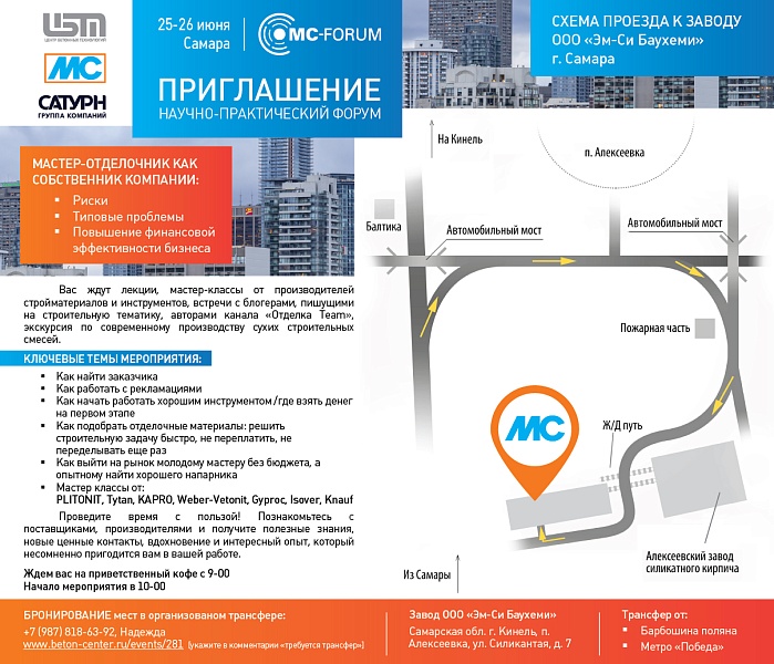 Мероприятие пройдет 25-26 июня 2019 года на ПСК Самара на базе Учебного полигона Центра бетонных технологий. К участию приглашены эксперты и ведущие специалисты отрасли, в том числе практикующие мастера, сотрудники ведущих коммерческих фирм, представители производителей отделочных материалов и инструментов.