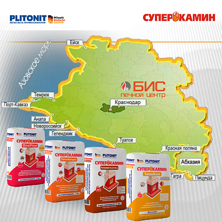 Теперь продукцию ТМ PLITONIT можно приобрести и в г. Краснодар в компании «БИС Печной центр».