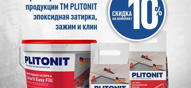 Скидка  10% на комплект PLITONIT Colorit Easy Fill и  СВП в магазинах «Сатурн – СПб»; «Сатурн – Уфа»; «Сатурн – Самара» «Сатурн – Оренбург» с 1.05 по 30.06.24