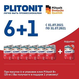 3) При покупке 6-и упаковок клея Plitonit В+ (25 кг.) Вы получаете в подарок 1 упаковку!