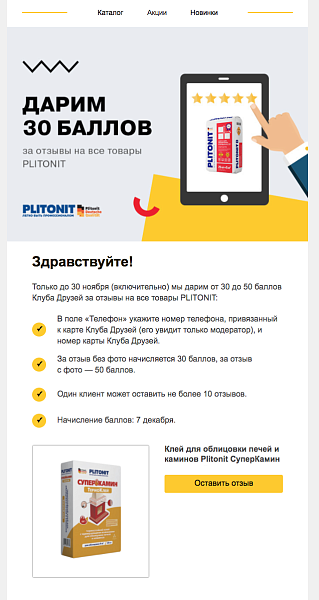 Оставляй отзывы о продуктах и получай баллы на карту друзей Петрович