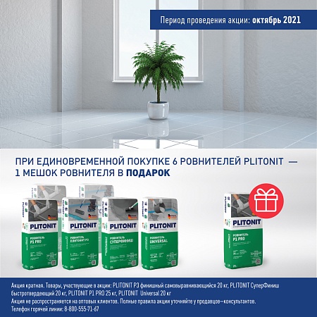 С 1 по 31 октября 2021 г. действует акция 5+1 на ровнители PLITONIT: