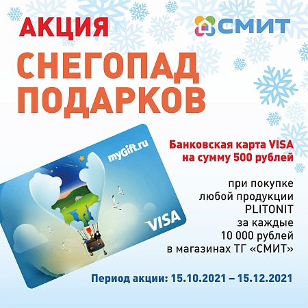 Получайте гарантированную банковскую карту MyGift VISA на сумму 500 рублей при покупке любой продукции PLITONIT на сумму 10 000 рублей;
