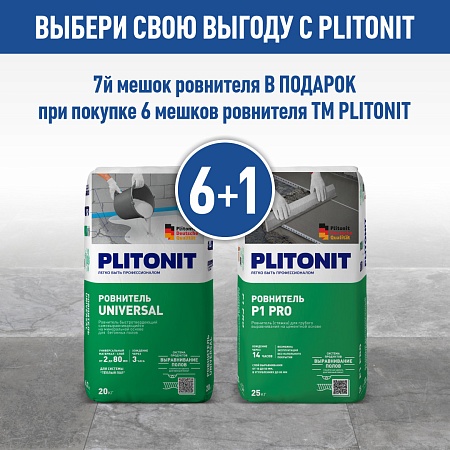 - Ассортимент акционных товаров ровнители PLITONIT Universal и PLITONIT Р1 Pro