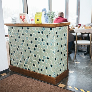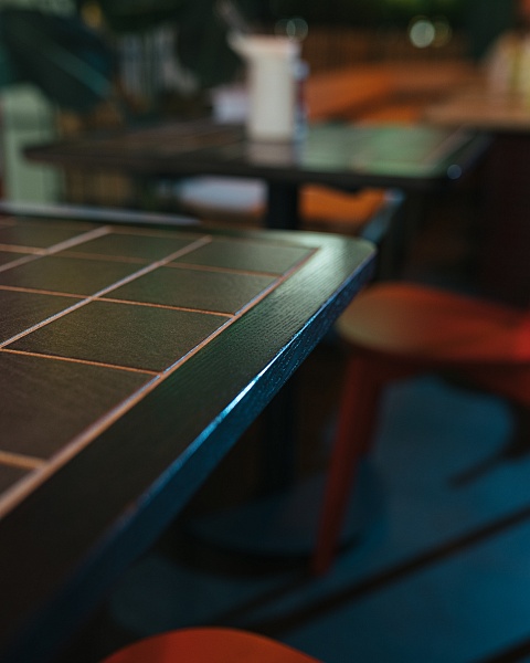 · Интересное решение приняли в паназиатском суши-баре: столы делали вручную, приклеивая плитку на PLITONIT В+ и затирая эпоксидными затирками PLITONIT Colorit Fast Premium.