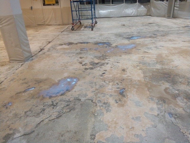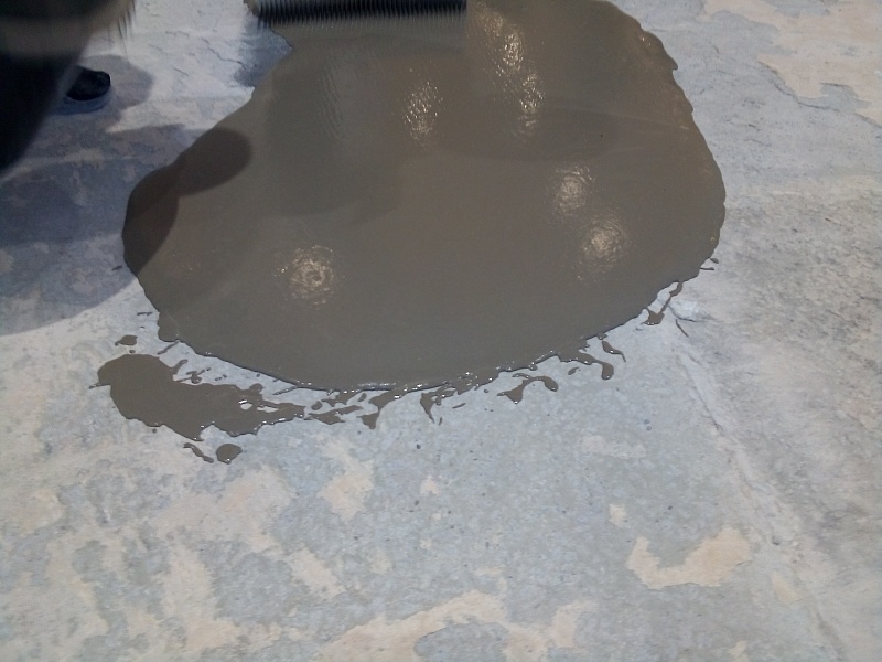 Конгрессно-выставочный центр предполагает значительное скопление людей, и, соответственно, значительную пешеходную нагрузку. Так как в качестве финишного покрытия пола был выбран кварц-винил, то перед подрядчиком стояло одновременно 2 задачи: наливной пол должен отличаться повышенной прочностью при сжатии и при этом дать идеально гладкую поверхность для укладки кварц-винила. Выбранный изначально материал для выравнивания пола от другого производителя с поставленными задачами не справился, поэтому пришлось работать не с «чистого основания», а исправляя ошибки.