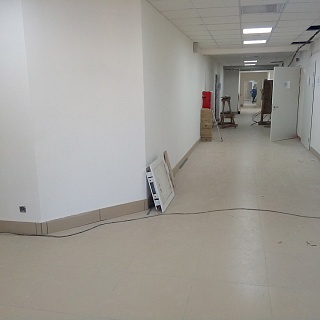 При проведение облицовочных работ применены материалы TM PLITONIT: произведена укладка керамогранита и кафельной плитки, выполнено оштукатуривание медицинский помещений.