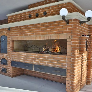 Продукты Плитонит в руках специалистов из Печного Мира помогли создать уникальный печной комплекс, где каждый желающий сможет насладиться свежеприготовленной выпечкой из русской печи и различными блюдами с мангала-коптильни. В состав печи входит зона барбекю, печь под казан, мини-русская печь, столешница.