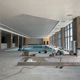 При строительстве объекта наша компания принимала участие в поставке материалов, а так же оказывала помощь при принятии некоторых технических решений (например, пробное нанесение гидроизоляции при 37 градусной жаре под открытым небом). Наш Техник Бузаев Павел, совместно со специалистом Кобзевой Анастасией справились с этой задачей, в результате получилась открытая терраса, гидроизолированная Плитонит Гидростена, с покрытием из утолщенного 20 мм керамогранита, форматом 300Х600, который укладывался на Плитонит В+
