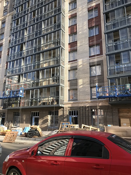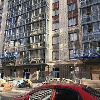 На объекте выполнена облицовка стен и полов подъездов, а также лестничных площадок