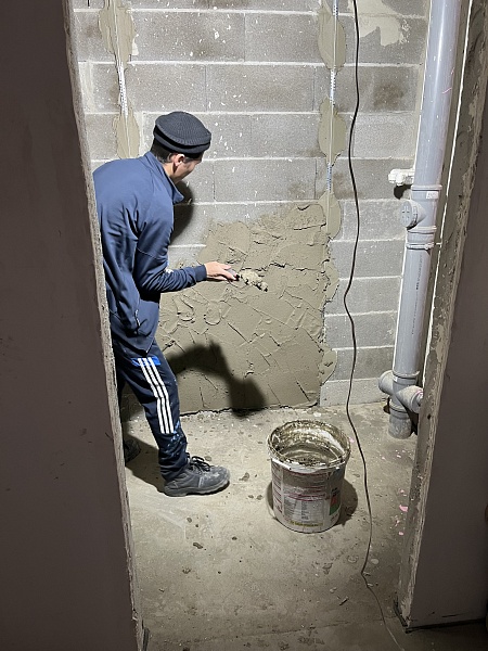 На объекте выполнено оштукатуривание стен цементной штукатуркой