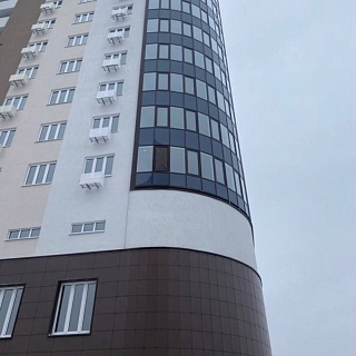 На фасаде здания много белых элементов, финишный слой которых выполнен шпаклевкой PLITONIT К белая.